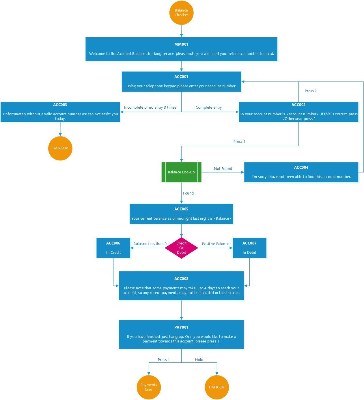 The IVR then looks up the account in an uploaded CSV file and will read back the current balance associated with the account.