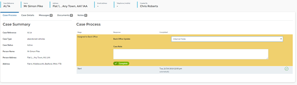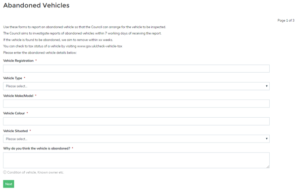 With the option to specify the precise location of the problem and to upload photos of the issue to help prioritise any work that needs to be undertaken.  Once a form has been submitted a case and workflow process are started in CH managing the lifecycle of the reported abandoned vehicle from start to finish.