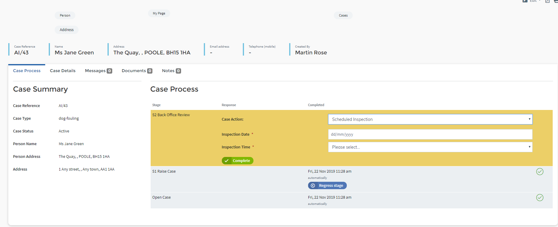 The workflow supports the request for additional information, and options for scheduling an inspection and for taking photos of the location in order to support obtaining information to pursue any prosecution. Automated emails form part of the workflow, so everyone from the person reporting the issue to the staff tasked with undertaking the work can be kept up to date with progress.