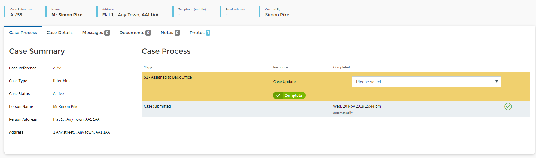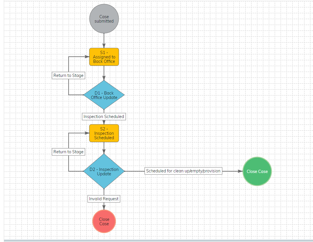 As part of this workflow the officer can add notes to the case, send for additional information via email, or can schedule the inspection of the location of the incident. As the case progresses, the office carrying out the inspection can add additional information to the case as to whether further action is required, or not. The process also includes stages to deal with a need to re-schedule an inspection, or to allow for a missed inspection. At all stages in the workflow, the customer is kept up to date via automated emails.