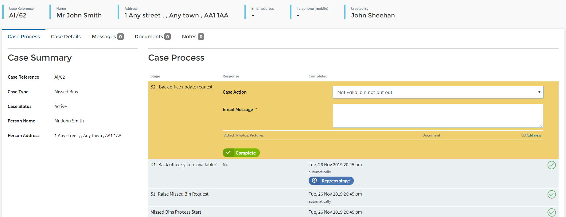 Throughout the process status updates are configured so that residents are kept up to date as their case progresses via email.
