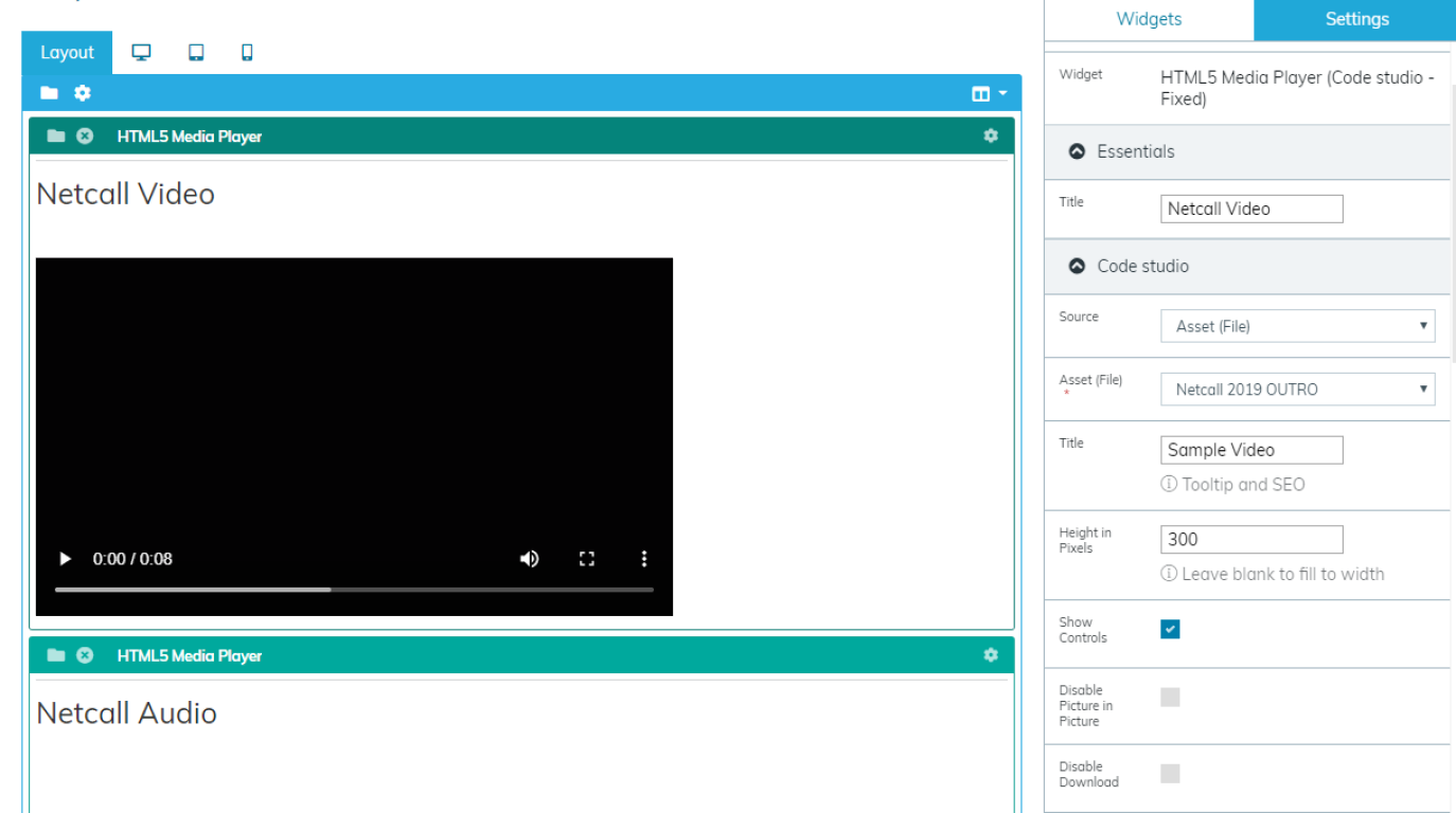 The widget also allows you to disable the media player’s controls, set the media to auto-play, loop it, disable picture-in-picture features and/or set a placeholder image.