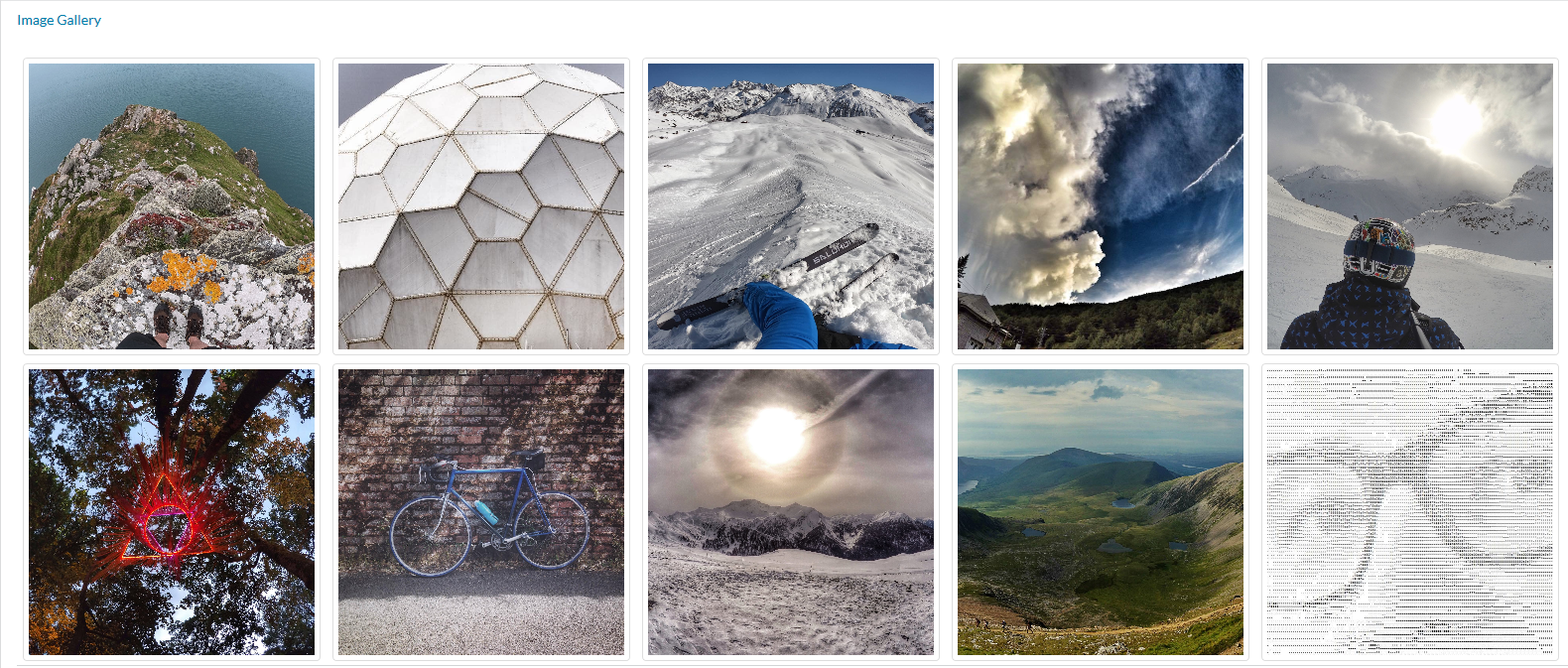 This Widget allows for the display of image type files in a Gallery format. This includes all files within a directory, or all files associated with a parent data object.