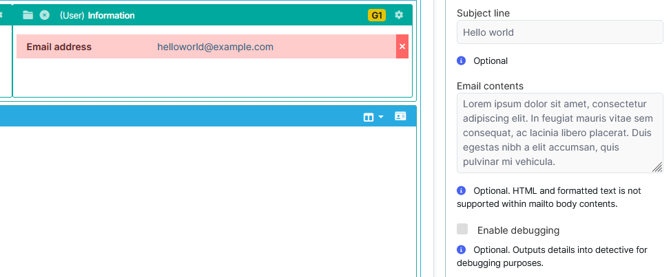 This is a useful feature as it allows you to quickly create an email and automatically specify the recipient. This setting can be applied to any email address or text single-line base format fragments. The recipient is sourced from the email address that is output from the fragment.