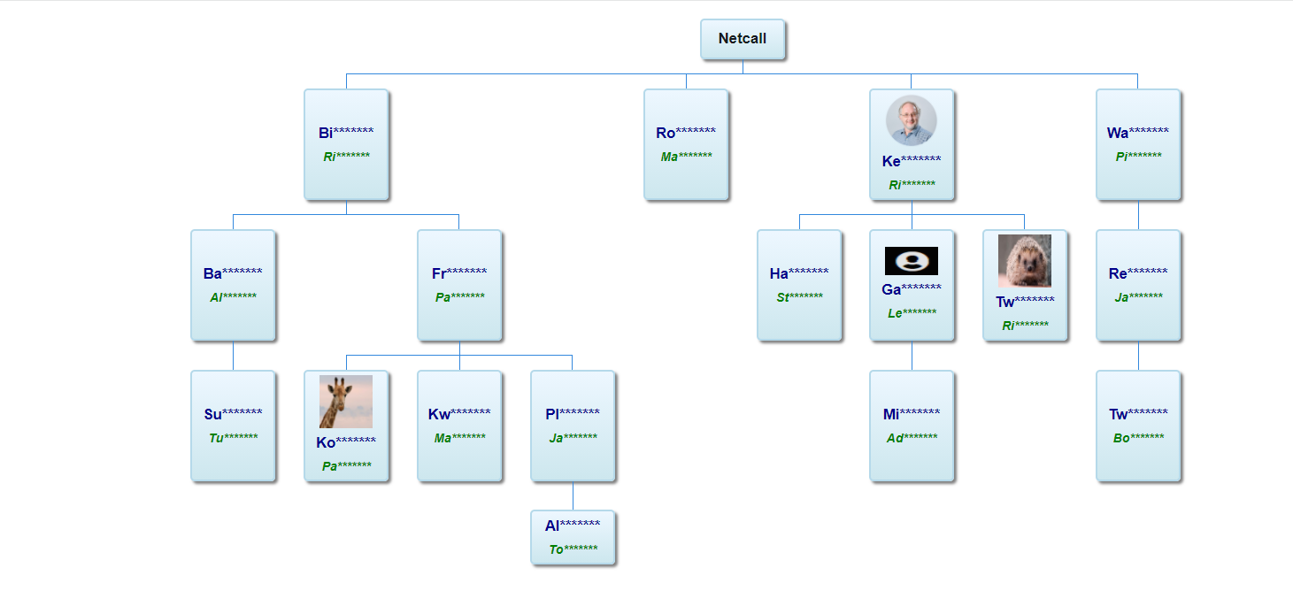 A dynamically created Organisation Chart based on Liberty Create data on a Web Page.