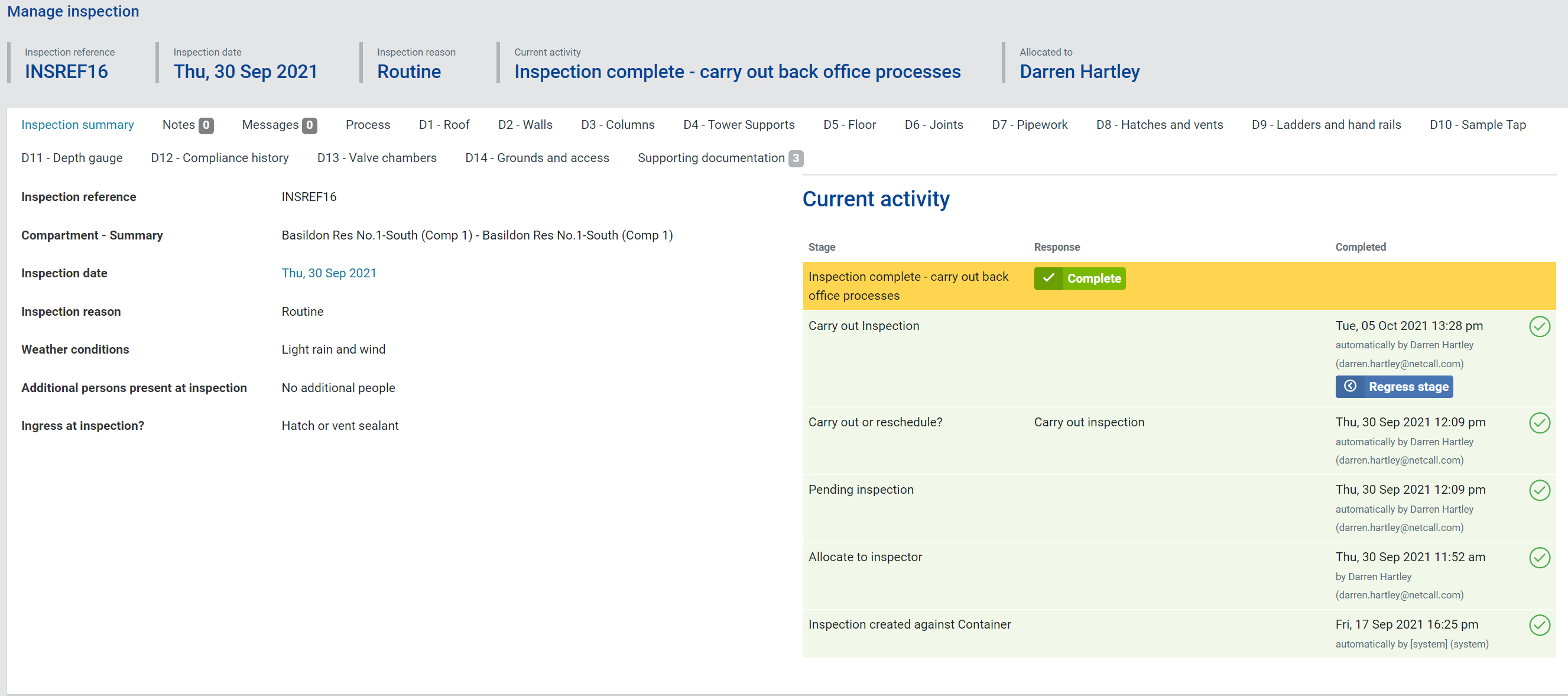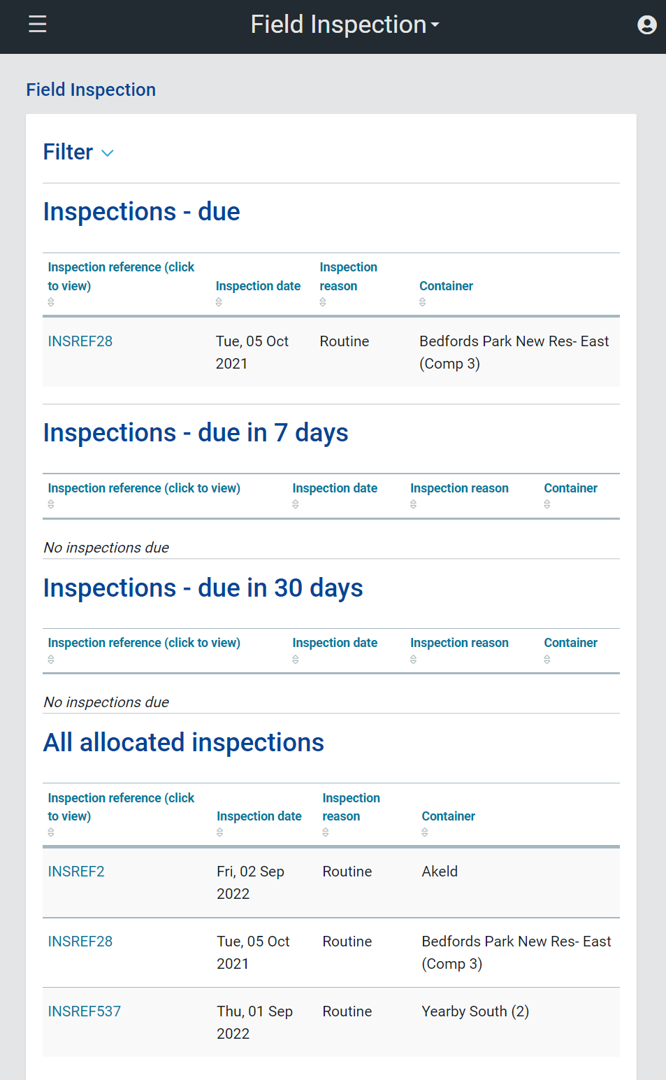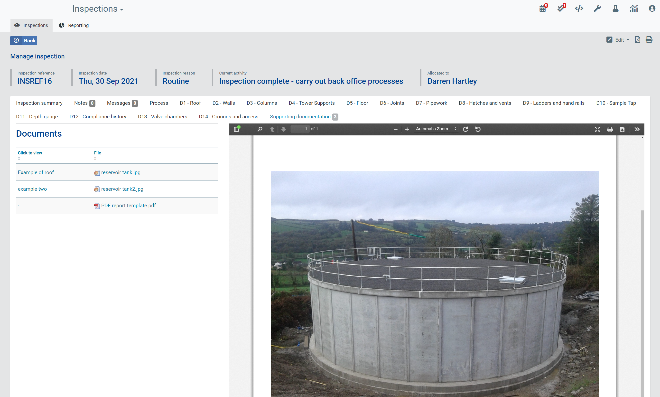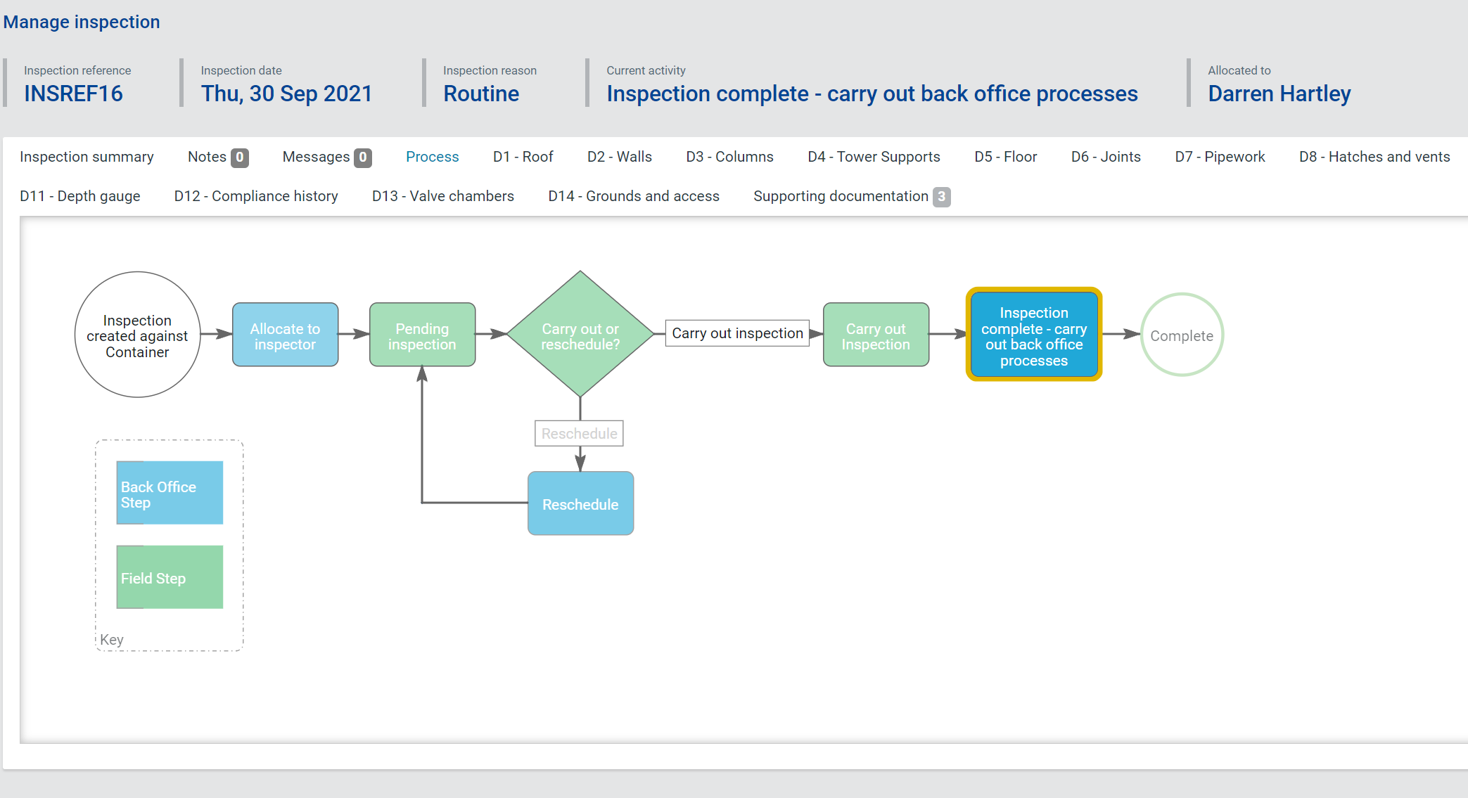 The application provides a back-office interface, allowing a team to create and allocate inspections, as well as review completed inspections, processing them accordingly with the organisation’s needs.