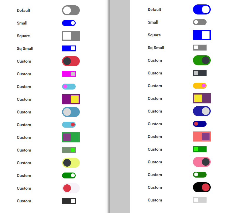 Colours: Default Grey off/Blue on/White slider. All can be customised